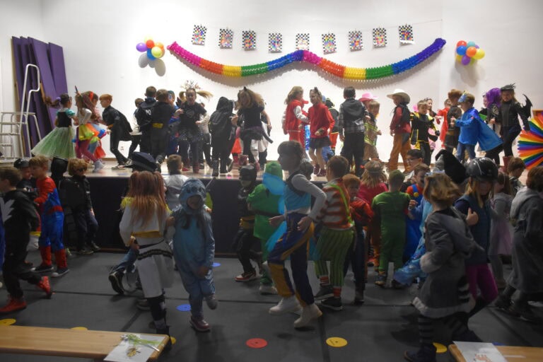 Am Karnevalstag verwandelt sich unsere Schule in ein fröhliches Narrenhaus: Prinzessinnen, Piraten, Superhelden, Tiere und viele fantasievolle Gestalten ziehen durch die Klassenräume. Gemeinsam wird gesungen, getanzt und gelacht.