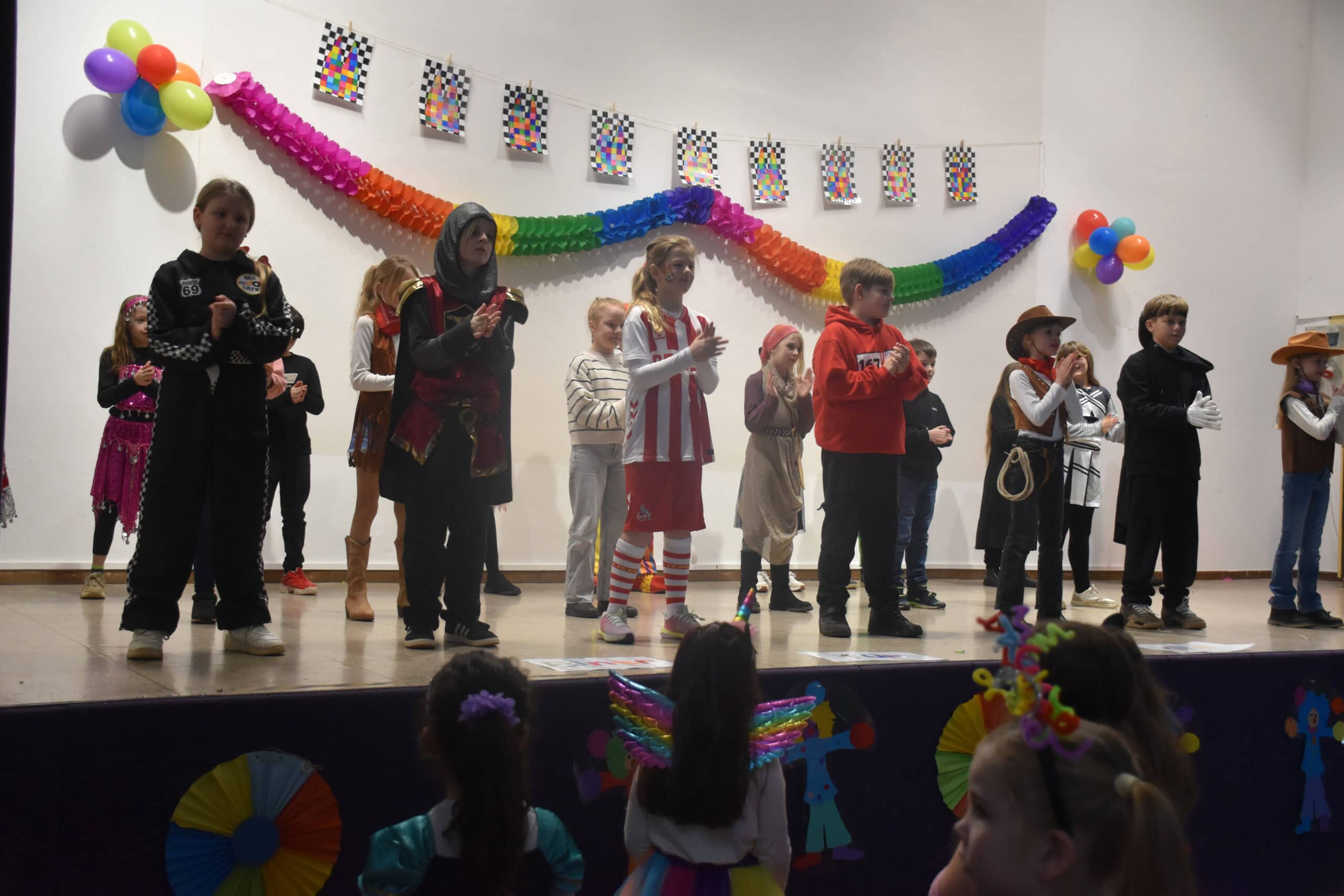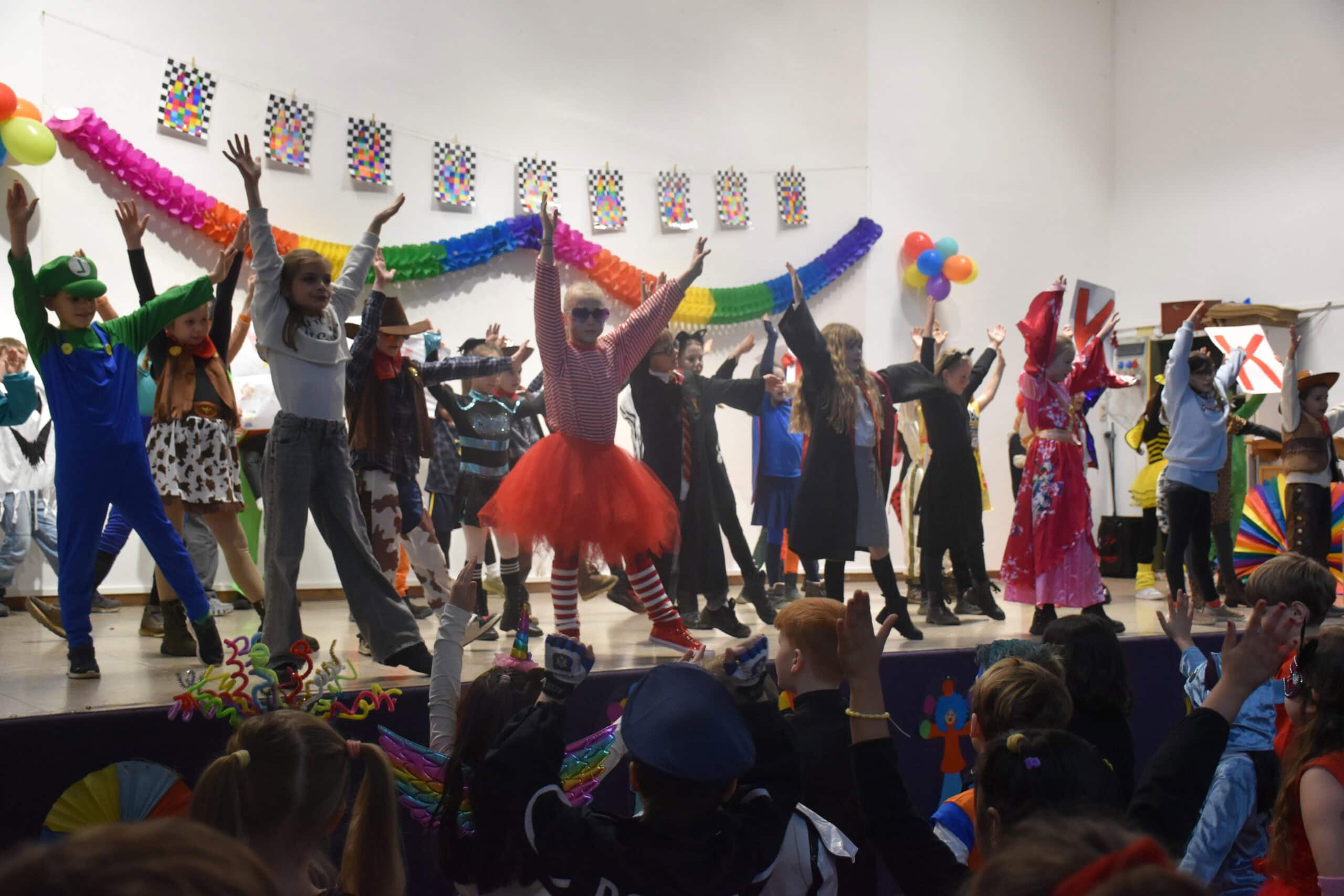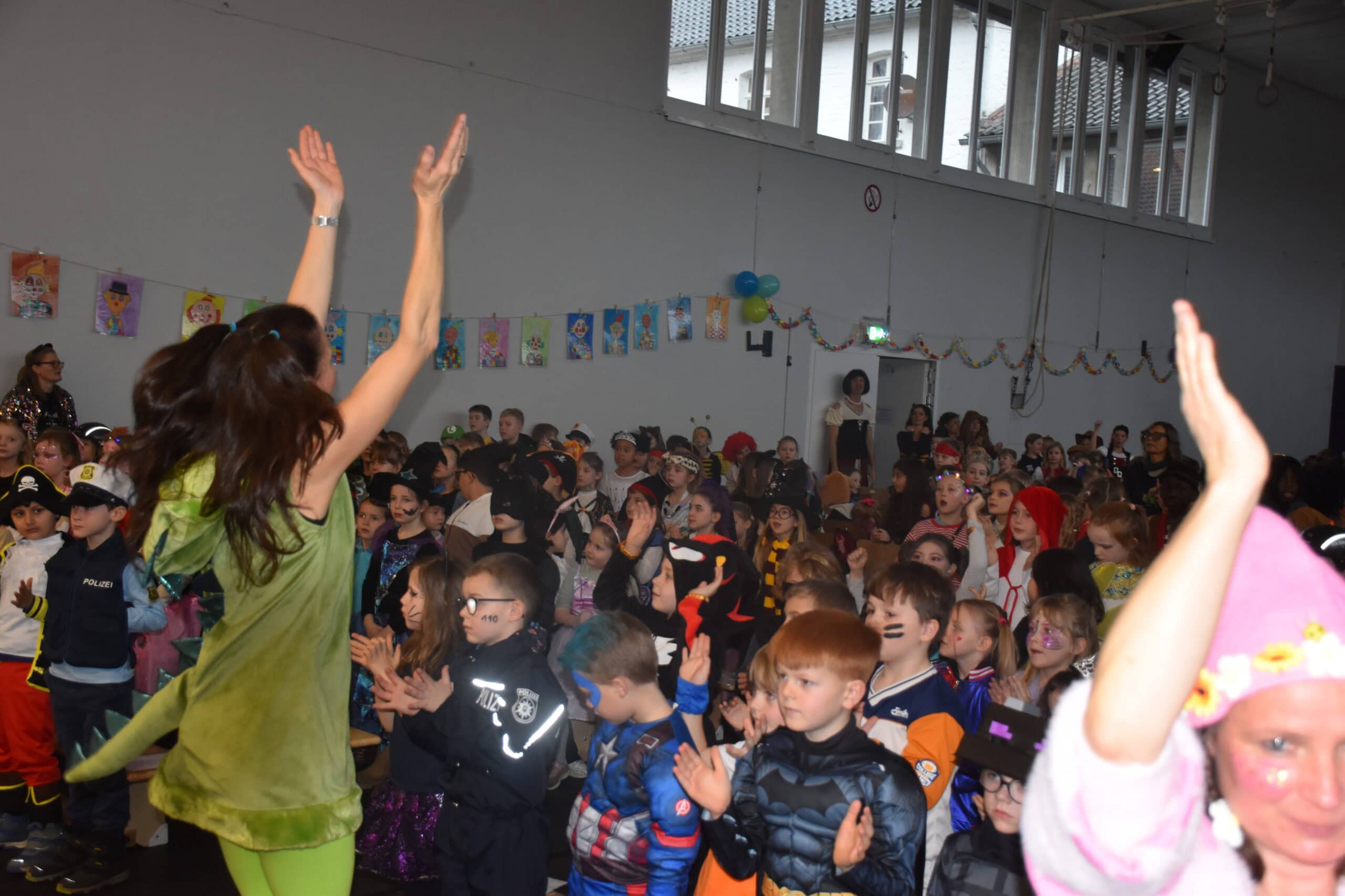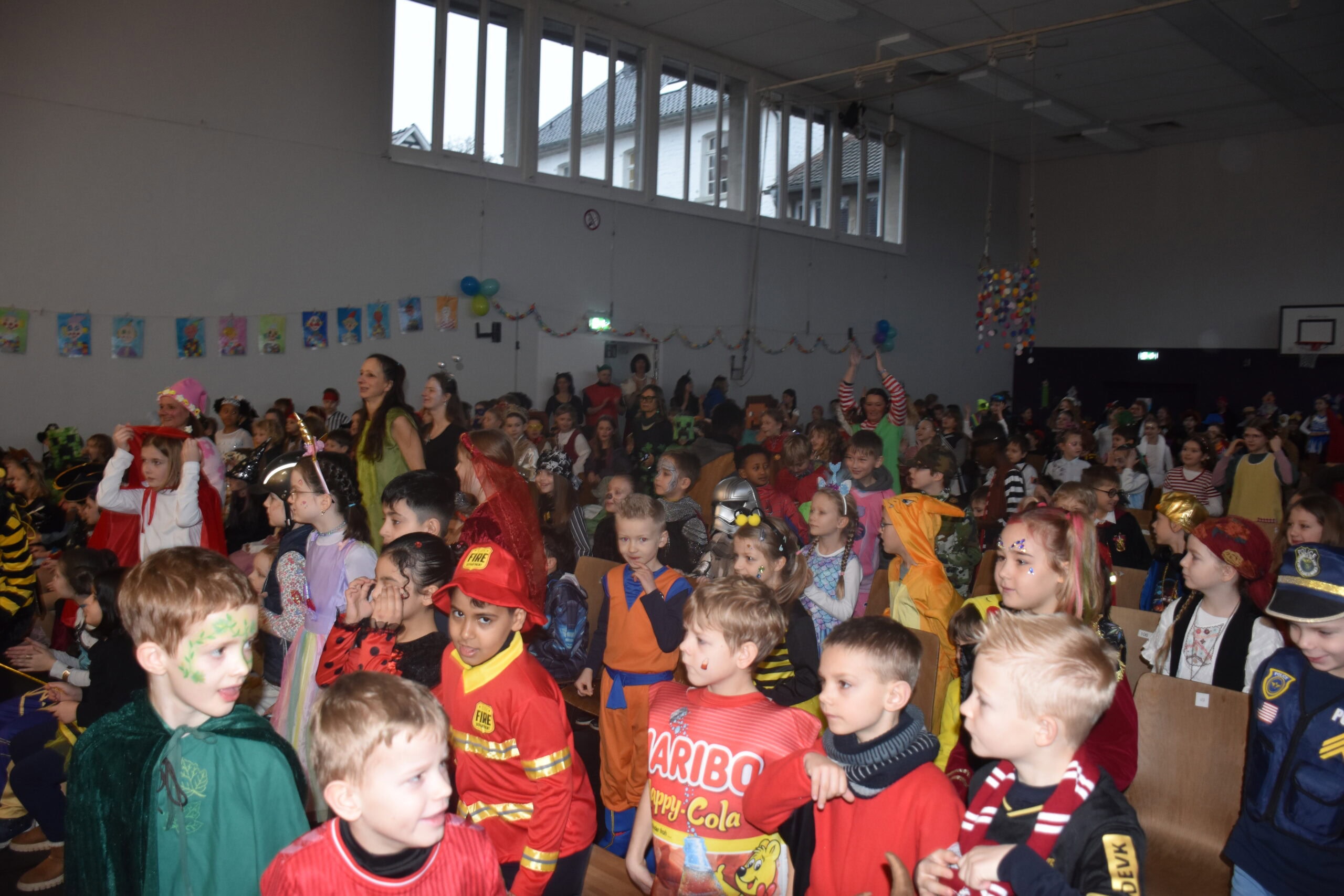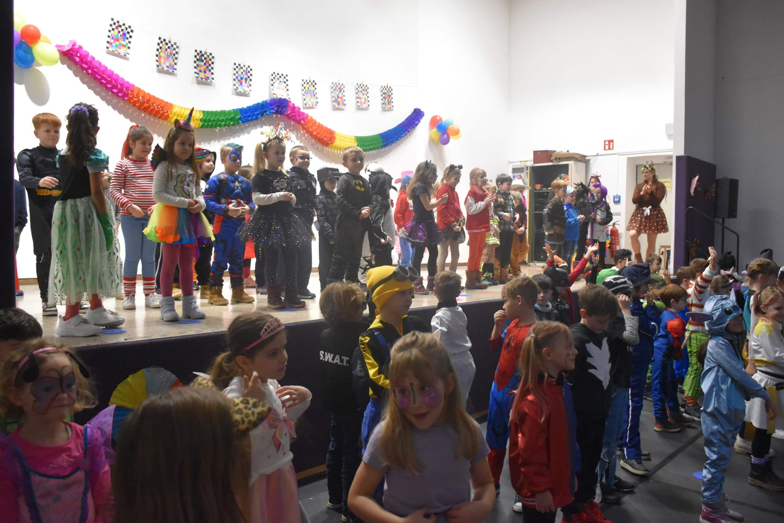Am Karnevalstag verwandelt sich unsere Schule in ein fröhliches Narrenhaus: Prinzessinnen, Piraten, Superhelden, Tiere und viele fantasievolle Gestalten ziehen durch die Klassenräume. Gemeinsam wird gesungen, getanzt und gelacht.