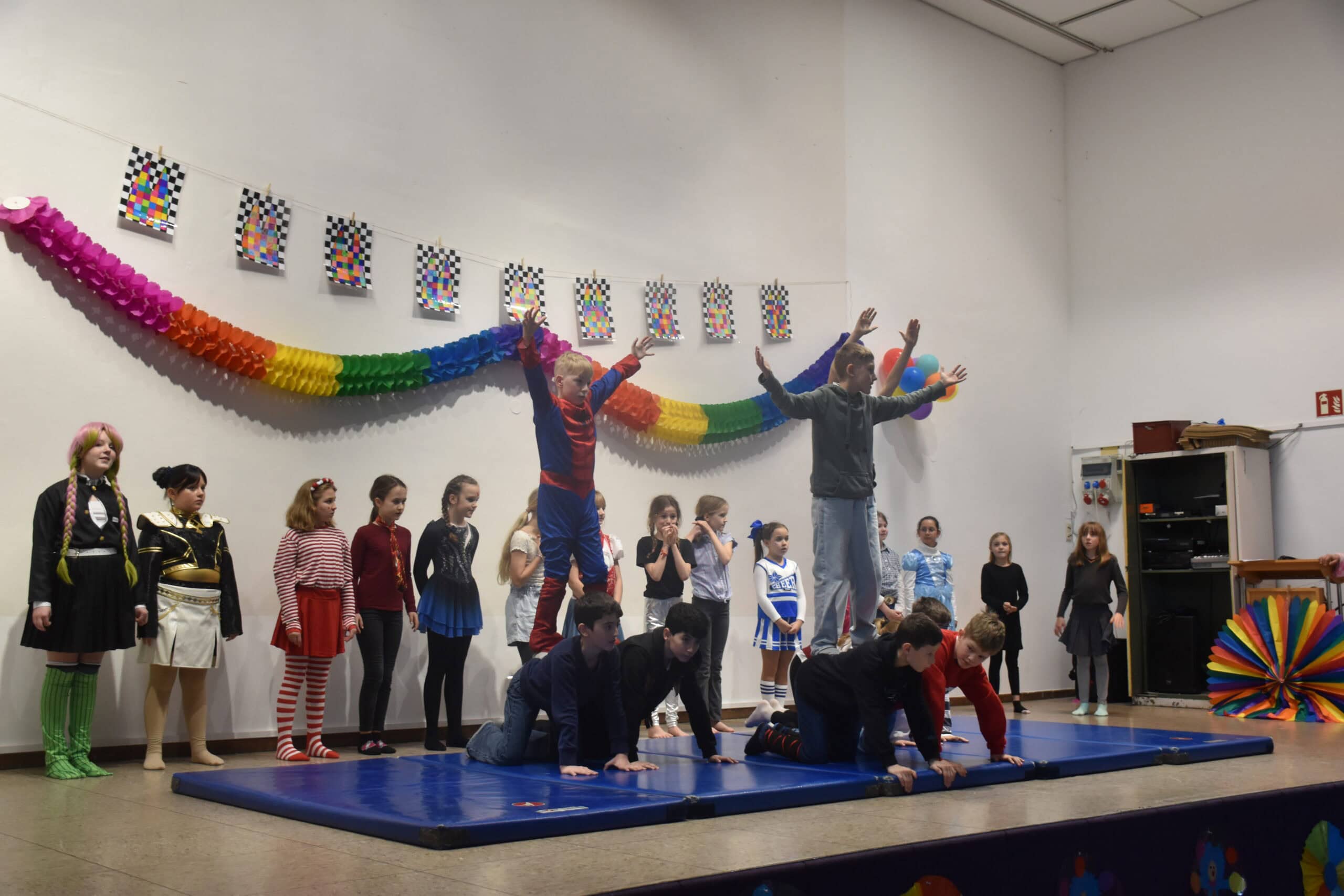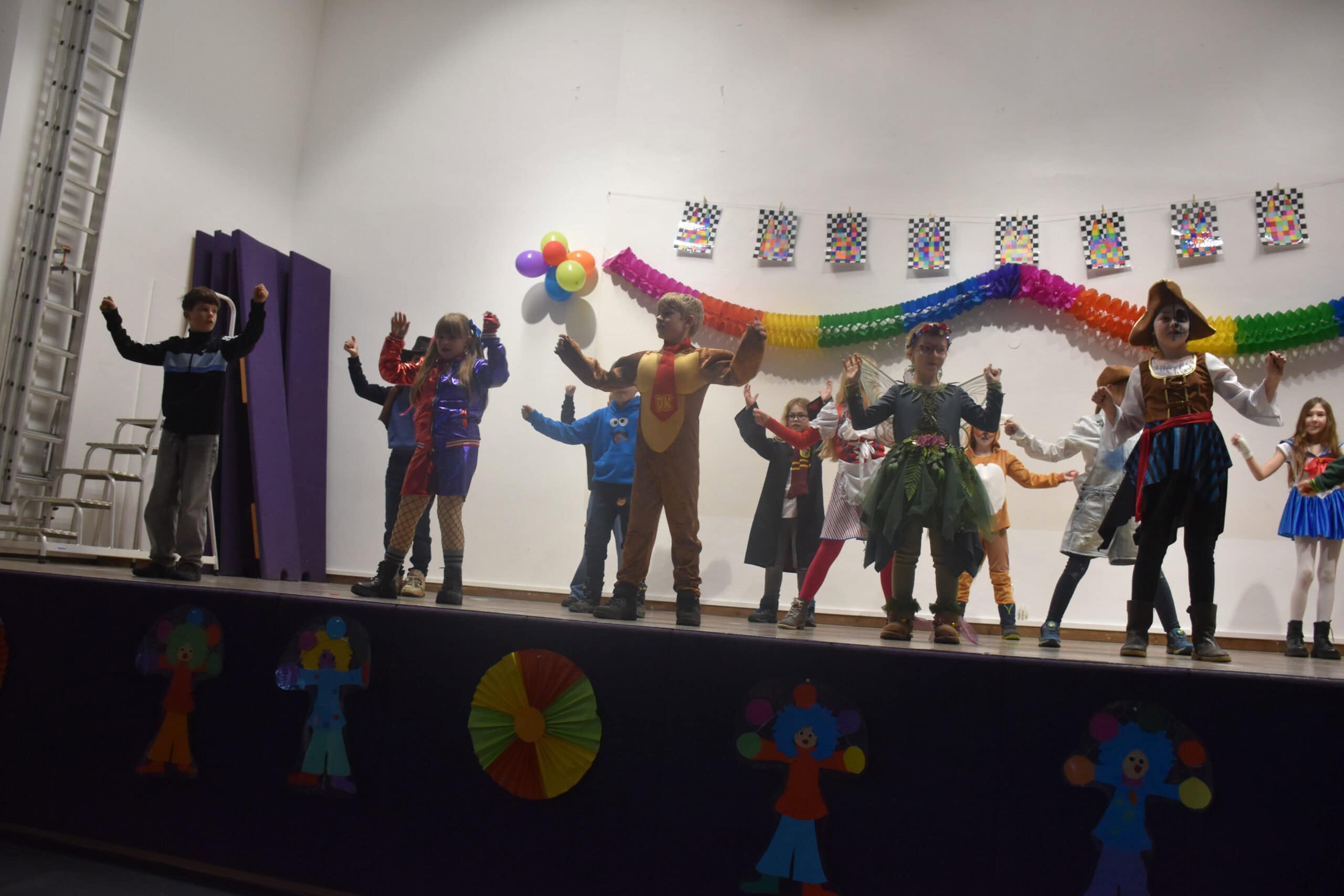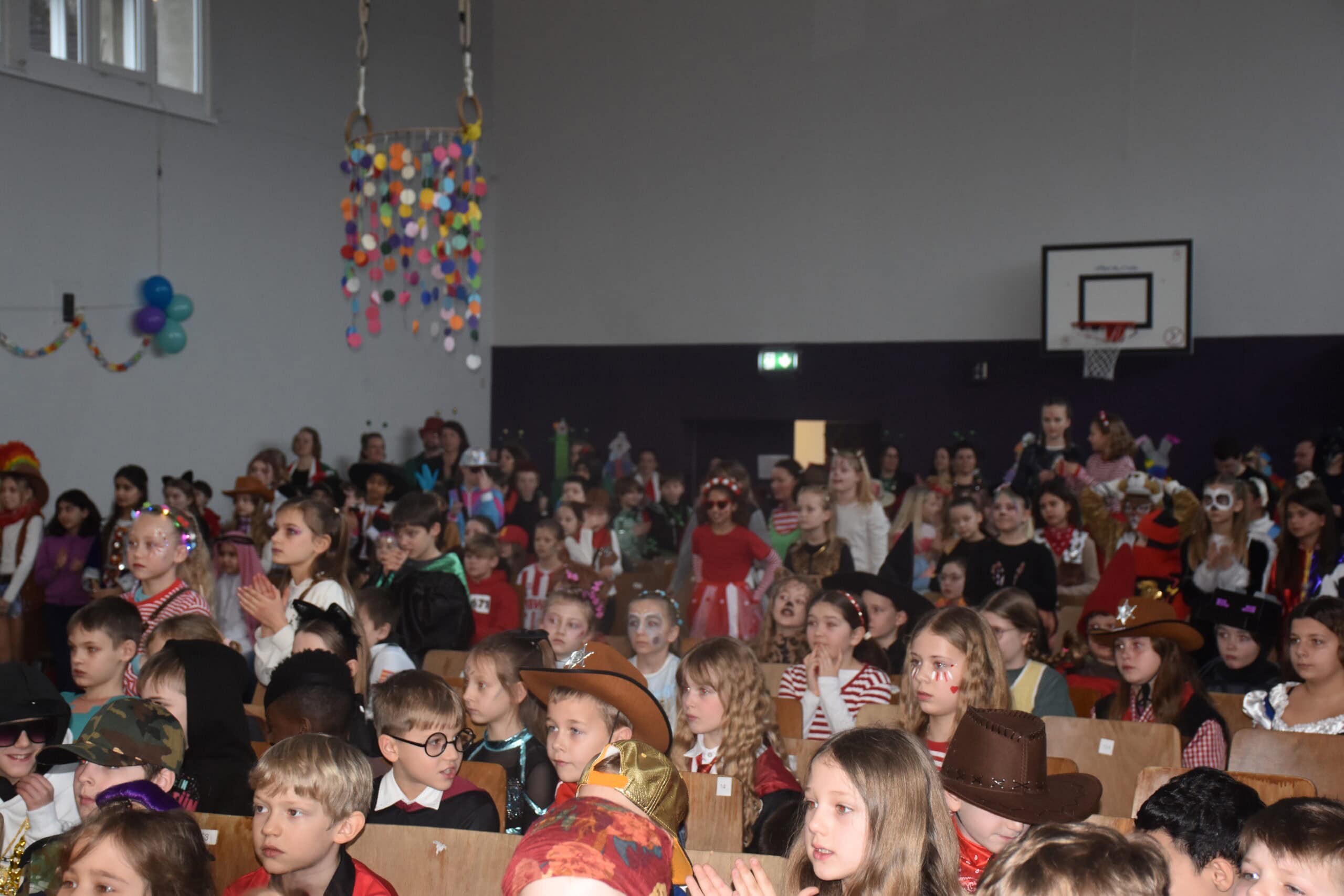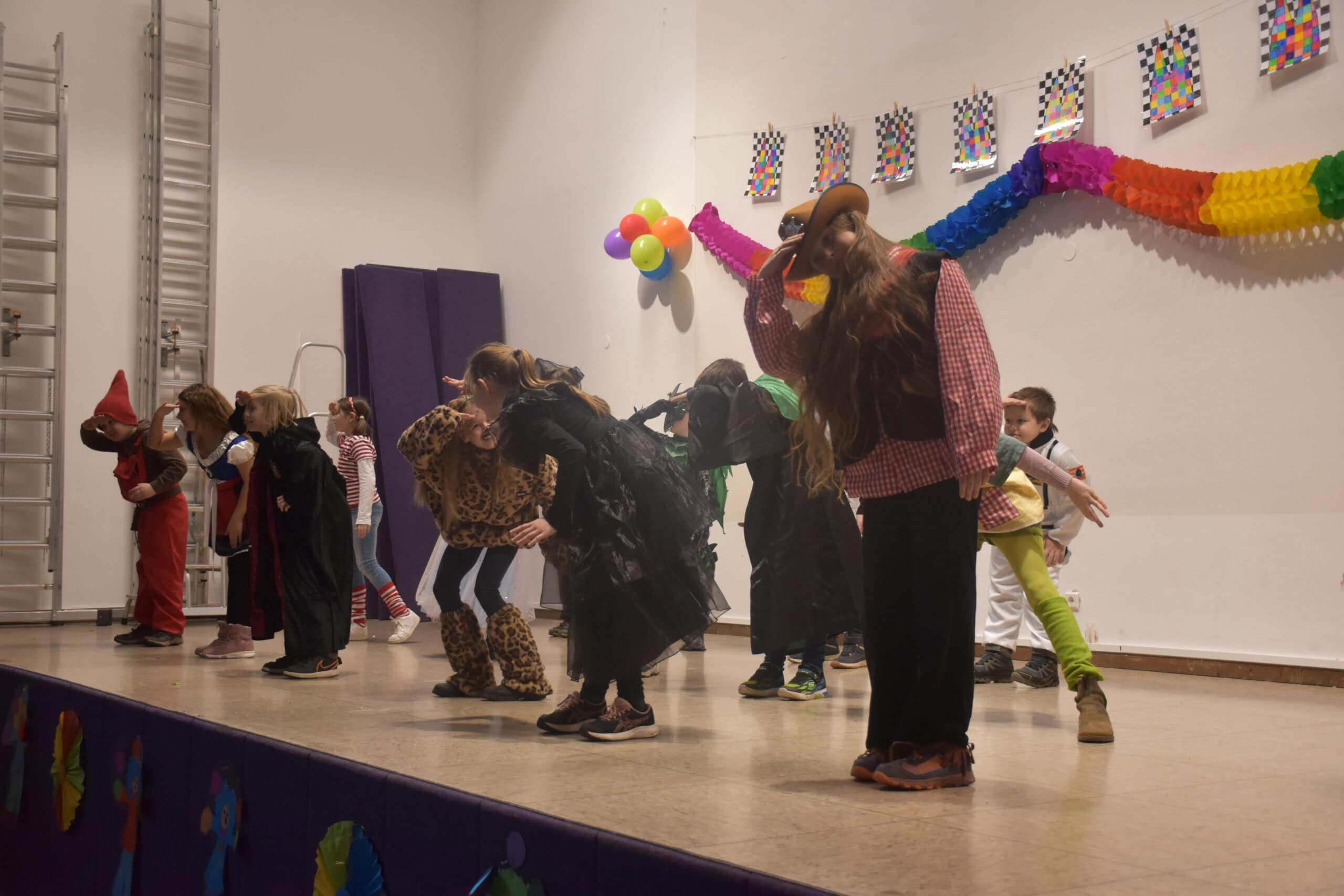 Ein besonderes Highlight ist unsere Feier in der Turnhalle. Hier sorgen Musik und kleine Aufführungen für beste Stimmung. Natürlich dürfen auch Süßigkeiten, Luftschlangen und Konfetti nicht fehlen!